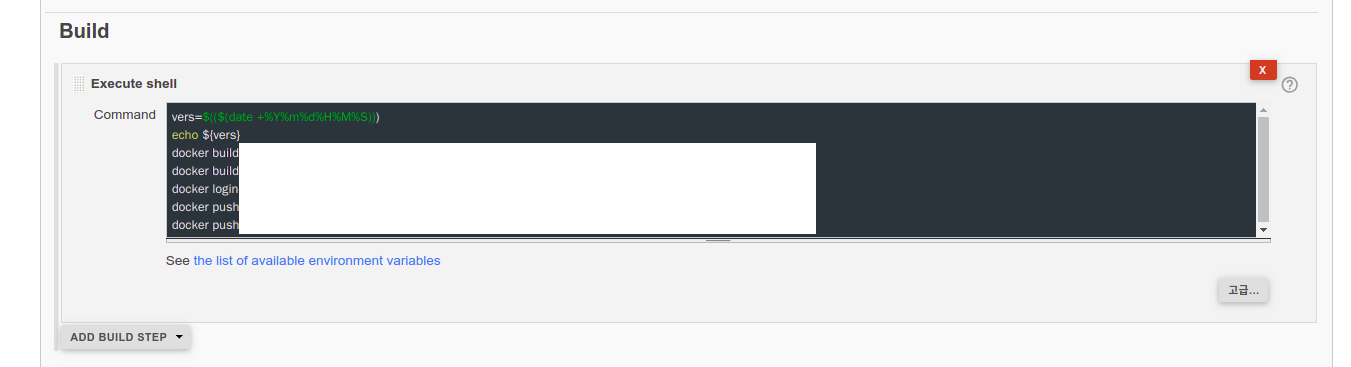 사실 여러 탭중에 Docker build and publish 나 execute docker command 가 있다. 딱 봐도 도커사용하려면 이게 필요할것 같은데 동작이 잘 되질 않아서 일단 커맨드를 직접 날렸다.