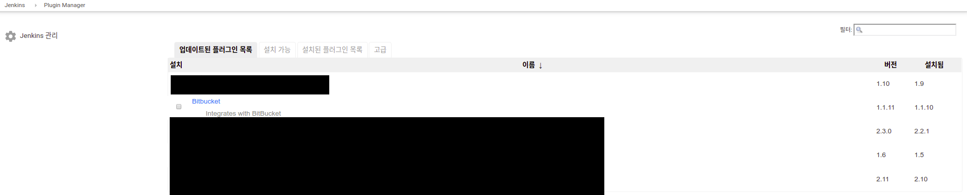 Jenkins > Jenkins 관리 > 플러그인 관리 에서 Bitbucket 플러그인을 설치한다.