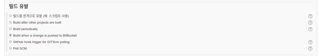 빌드 유발을 Build when a change is pushed to BitBucket을 선택해준다.
