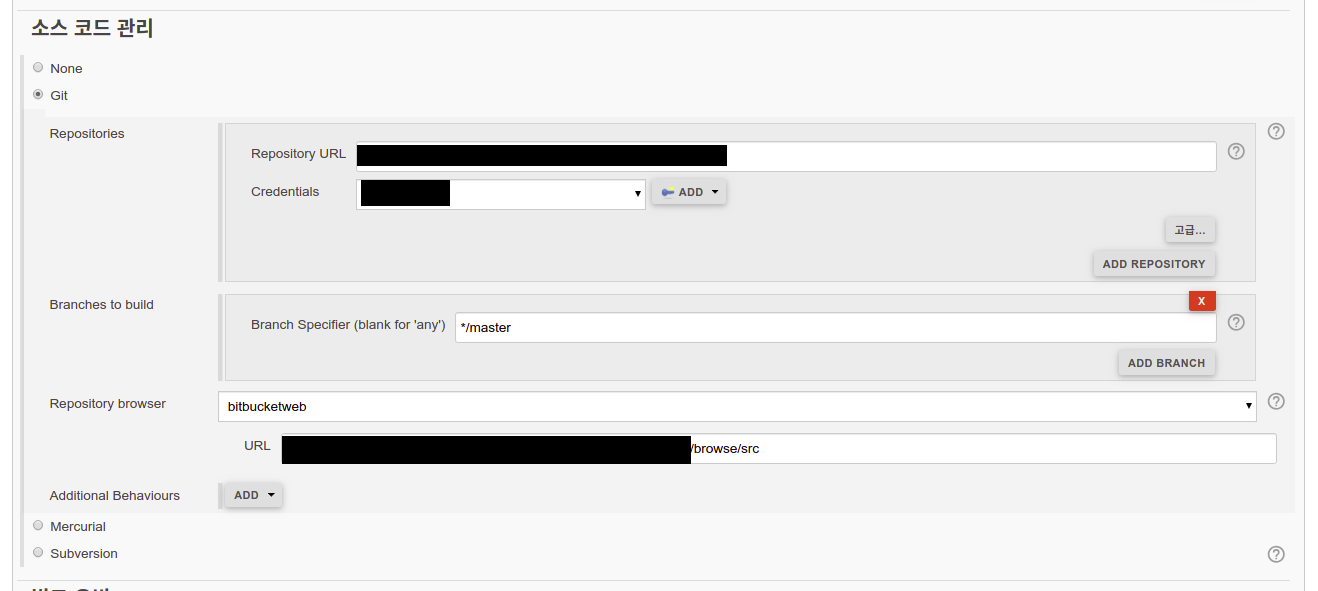 3. Branches to build : 빌드할 브랜치